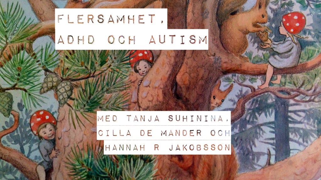 Att neuropsykiatriska funktionsvariationer är vanligare bland flersamma (eller att flersamhet är vanligare hos personer med autism eller ADHD) är en illa dold hemlighet. Men hur kommer det sig? I sista mötet av Flersamt forum träffas tre psykologer för att diskutera just det. Hannah R Jakobsson är extra vass på att jobba med personer på autismspektrumet, Cilla De Mander är extra vass på vad det innebär att leva med ADHD, och Tanja Suhinina är en flersamhetsexpert som ska försöka få oss att få in så mycket som möjligt på två timmar, när båda gästerna lätt hade kunnat hålla publiken engagerad i en hel dag.